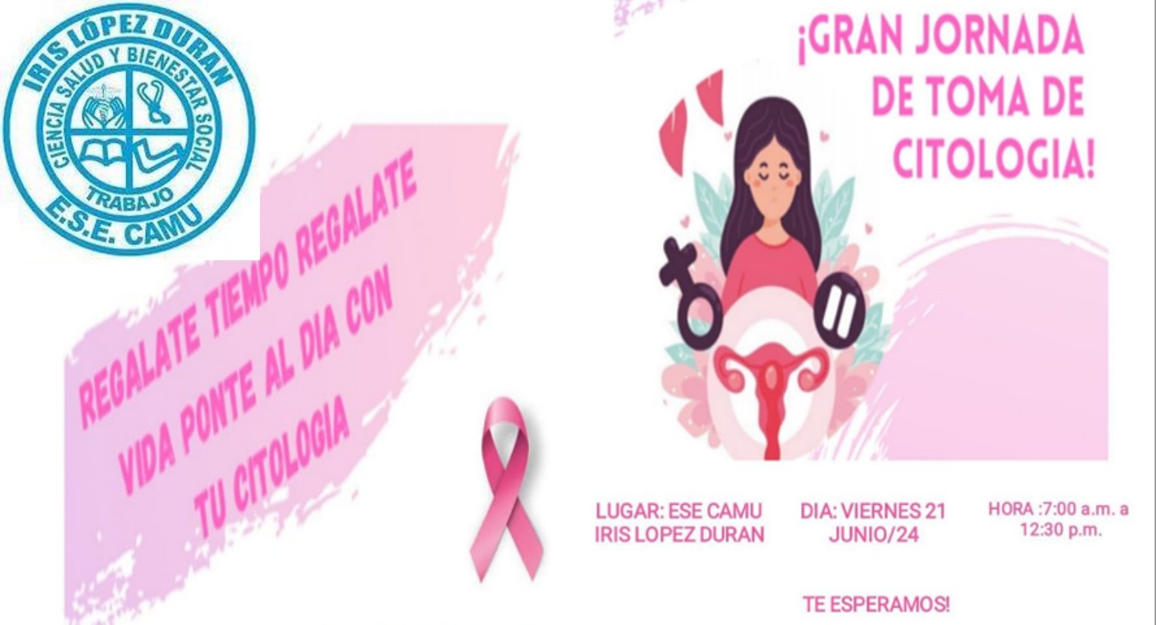 19 junio, 2024 CAMU San Antero 0 Comments Campaña Citología La ESE Camu IRIS LÓPEZ DURÁN, se complace en invitar a todas las personas del municipio de San Antero Córdoba a la Jornada de toma de Citología.